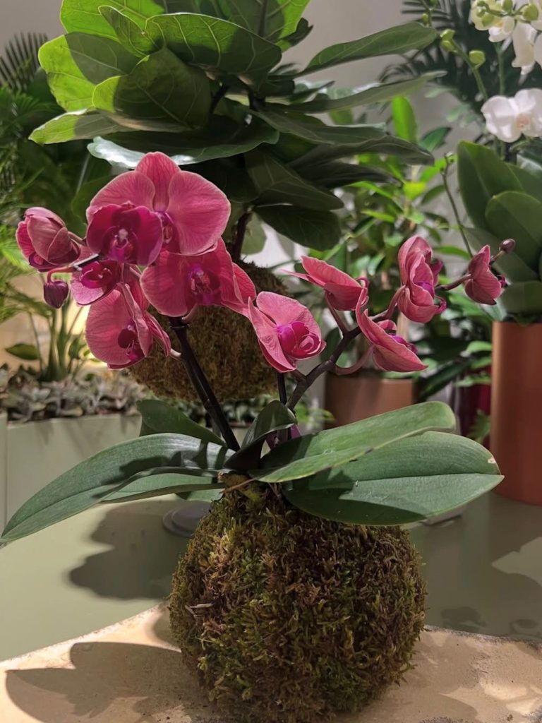 Eine Freundin hat ein Geschäft, in dem sie diese Mooskugeln, die Kokedame, verkaufte, die jemand anderes herstellte. Sie wusste von meiner Liebe zu Pflanzen und fragte mich irgendwann: „Warum machst du mir nicht Kokedame?“ Ich habe zuerst abgelehnt. Ich dachte, ich könne das nicht. Bis sie mich eines Tages anrief und sagte: „Ich habe einen Auftrag für dich angenommen. Du musst 30 Kokedame für ein Restaurant machen.“ So hat sie mich – im besten Sinne – dazu gezwungen, anzufangen.