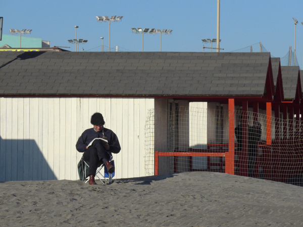 Heute war ein wahrlich traumhafter Februar-Tag, Sonne zum Genießen, das fanden auch viele Italiener, die mit Sack und Pack am Meer waren und Fußball spielten, joggten, surften, in der Sonne zu Mittag aßen, flanierten, faul in der Sonne rumlagen. Alle genossen diesen Tag – jeder auf seine Weise.